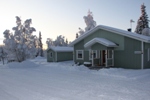 Pihapiirin grillikota, suksien huoltotila ja joen törmällä sijaitseva tynnyrisauna ovat myös käytettävissä.